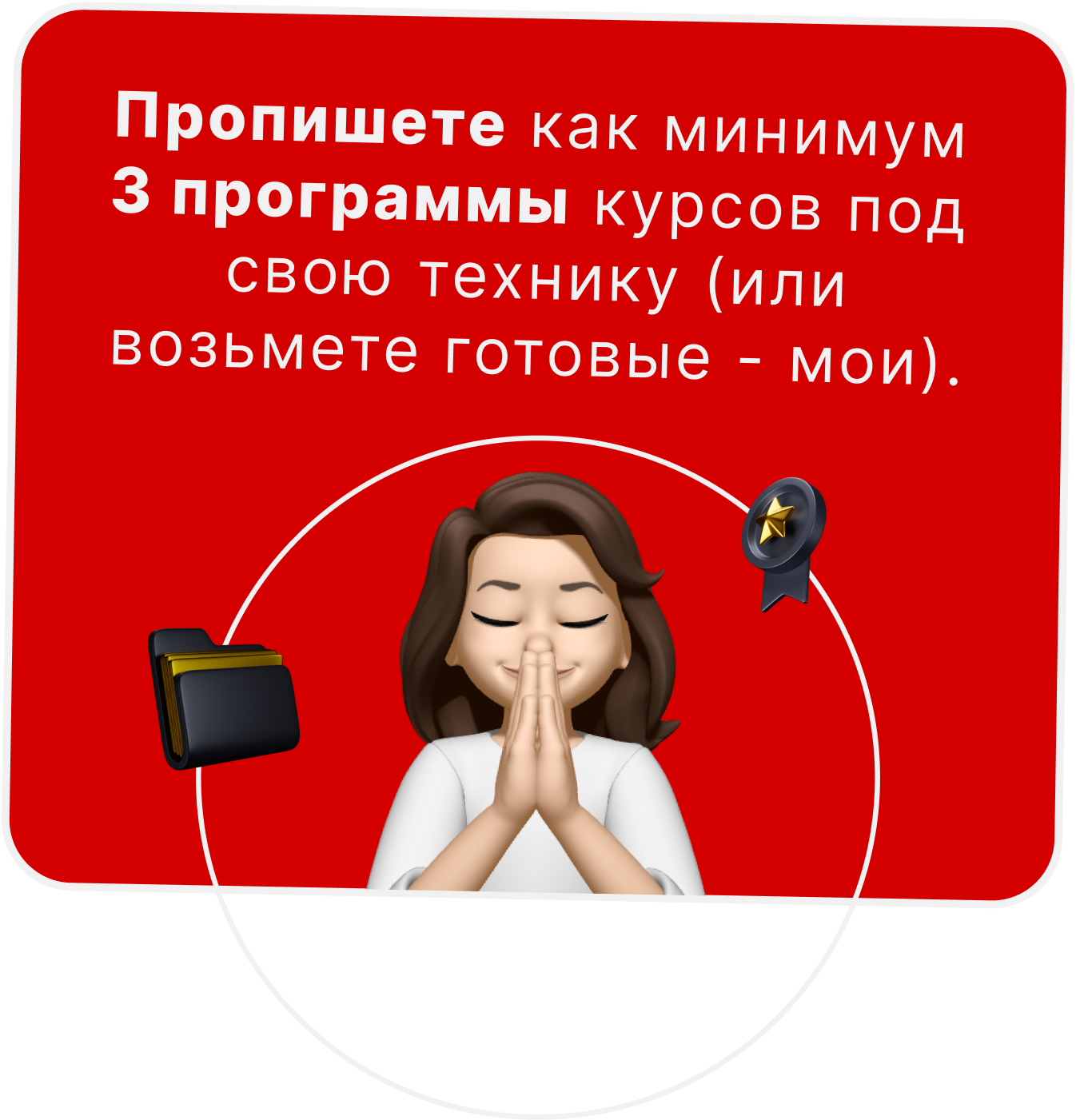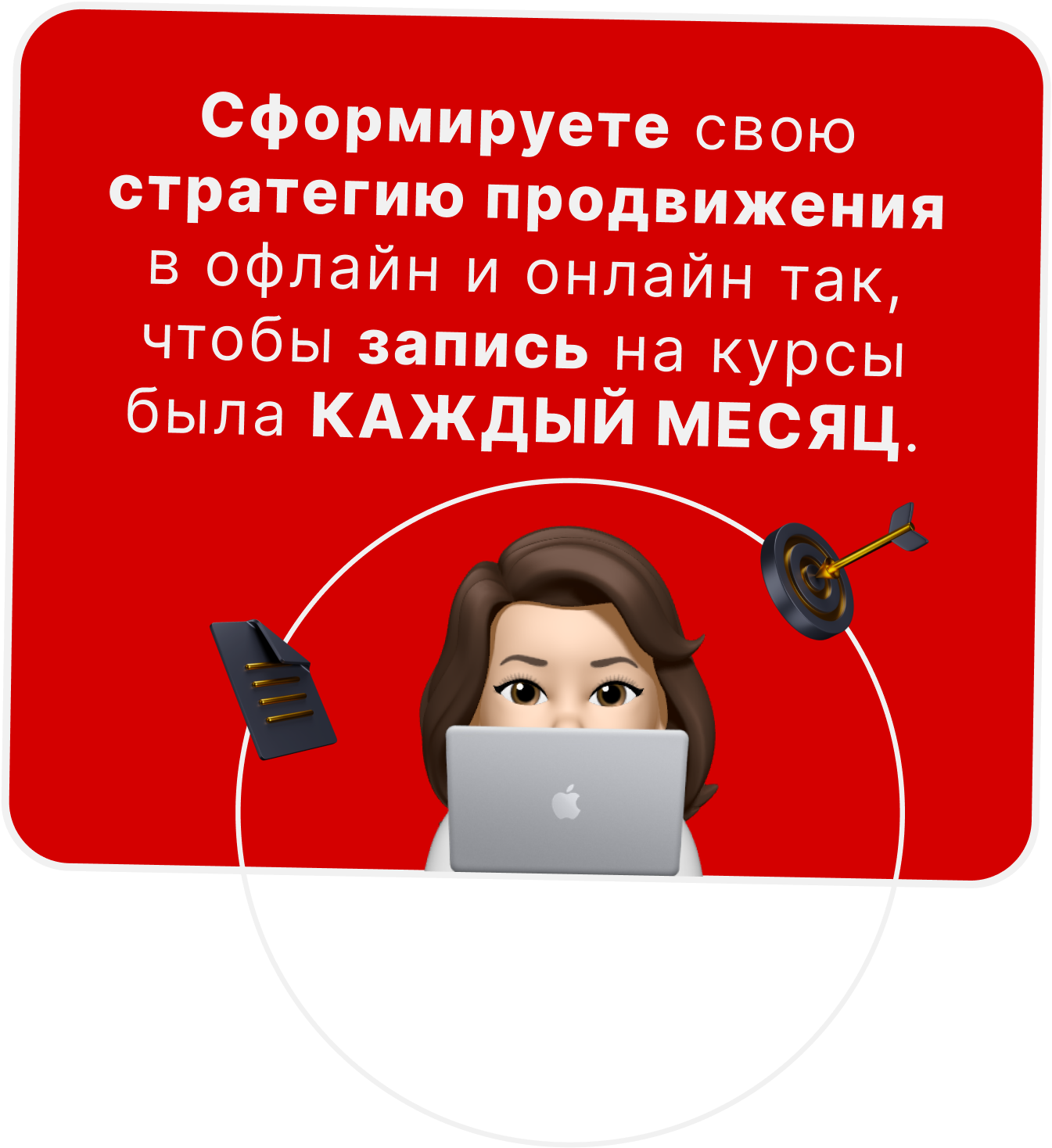 Поймёте, что online — это не страшно, когда есть система. Вы составите свою продуктовую линейку из минимум 3-х продуктов. Пропишете тех. задание для себя, установите грамотную ценовую политику и сможете приступить к записи и продажам своих онлайн продуктов уже в моменте обучения.
